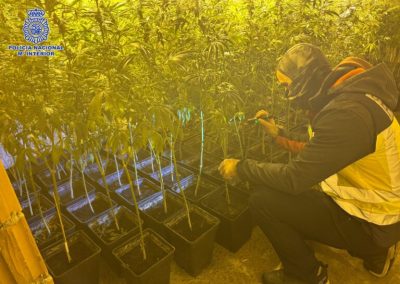 Tras una entrada y registro en la casa cueva se encontró una ‘plantación indoor’ de marihuana dentro de tres huecos excavados en la roca. Se intervinieron un total de 286 plantas en avanzado estado de floración y un gran número de utensilios destinados al cultivo de esta sustancia, como 2 balanzas, 13 reactancias (transformadores), 28 bombillas halógenas, 18 lámparas, 8 tubos extractores, 8 temporizadores, 1 ventilador o rollo de aislante térmico.