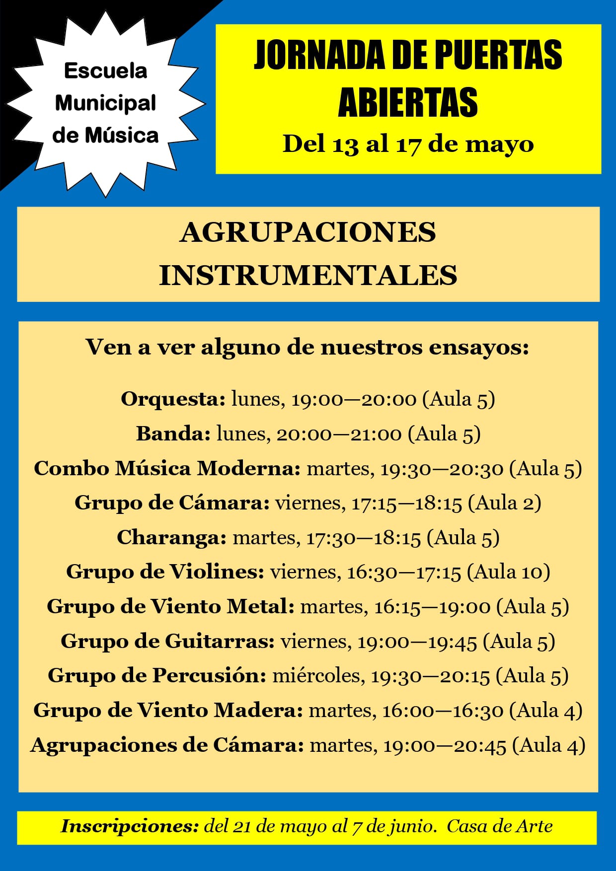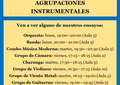 - Agrupaciones de cámara: 19:00 a 20:45 h. (Aula 4)
