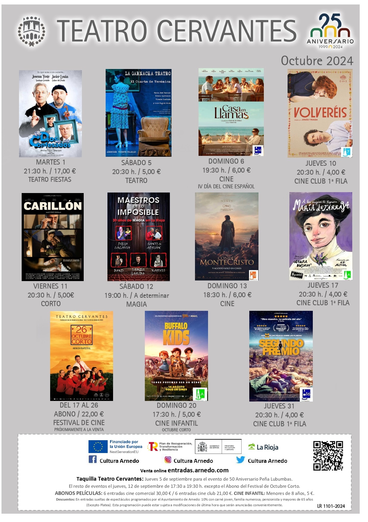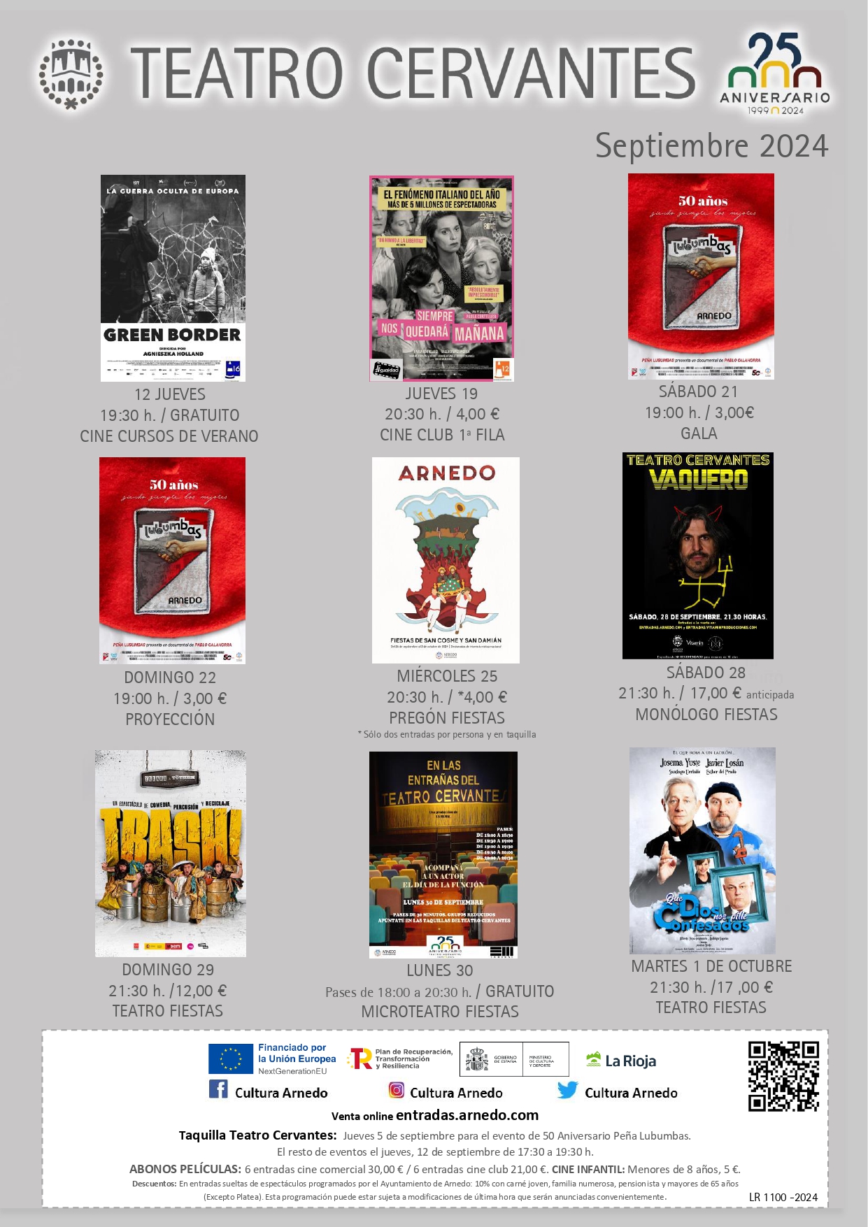 * Teatro Cervantes. Teléfono: 941.385200 Correo electrónico: teatrocervantes@arnedo.com