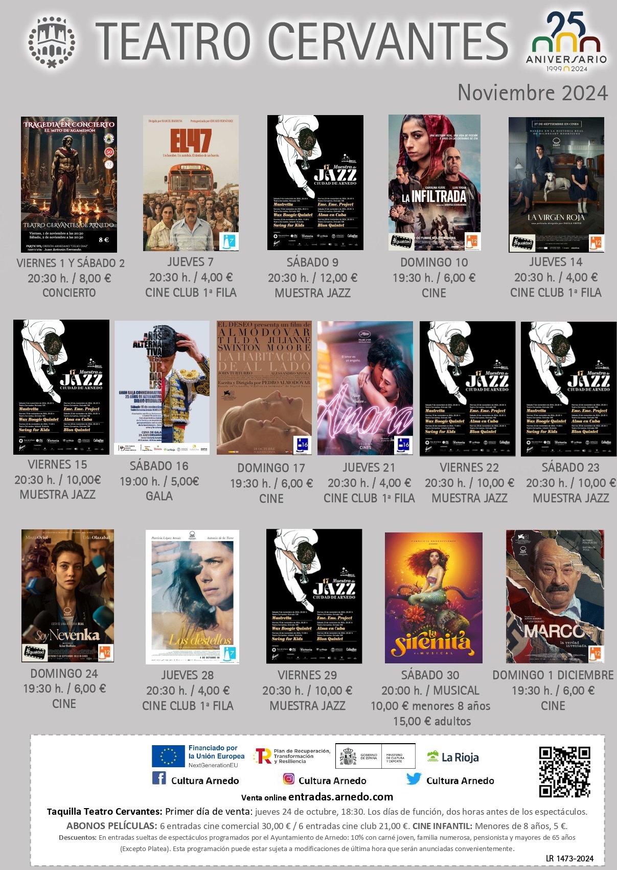* Teatro Cervantes. Teléfono: 941.385200 Correo electrónico: teatrocervantes@arnedo.com