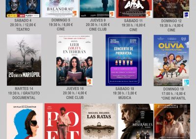 Por su parte, el cine-club municipal de los jueves arrancará en abril con “La Grazia” (día 9), seguido de “Leer Lolita en Teherán” (día 16), “Un poeta” (día 23) y “El agente secreto” (día 30).