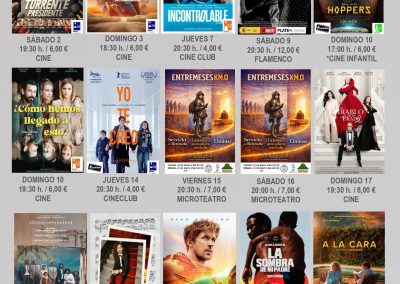 De cara al mes de mayo, la cartelera continuará con “Torrente Presidente” el sábado 2; “Una batalla tras otra” el domingo 3; la propuesta infantil “Hoopers” el domingo 10 a las 17:00 horas, jornada en la que también se proyectará “¿Cómo hemos llegado a esto?” a las 19:30 horas. El domingo 17 será el turno de “El diablo se viste de Prada 2”; el domingo 24 de “Proyecto salvación”; y el domingo 31 se cerrará el mes con “A la cara”.