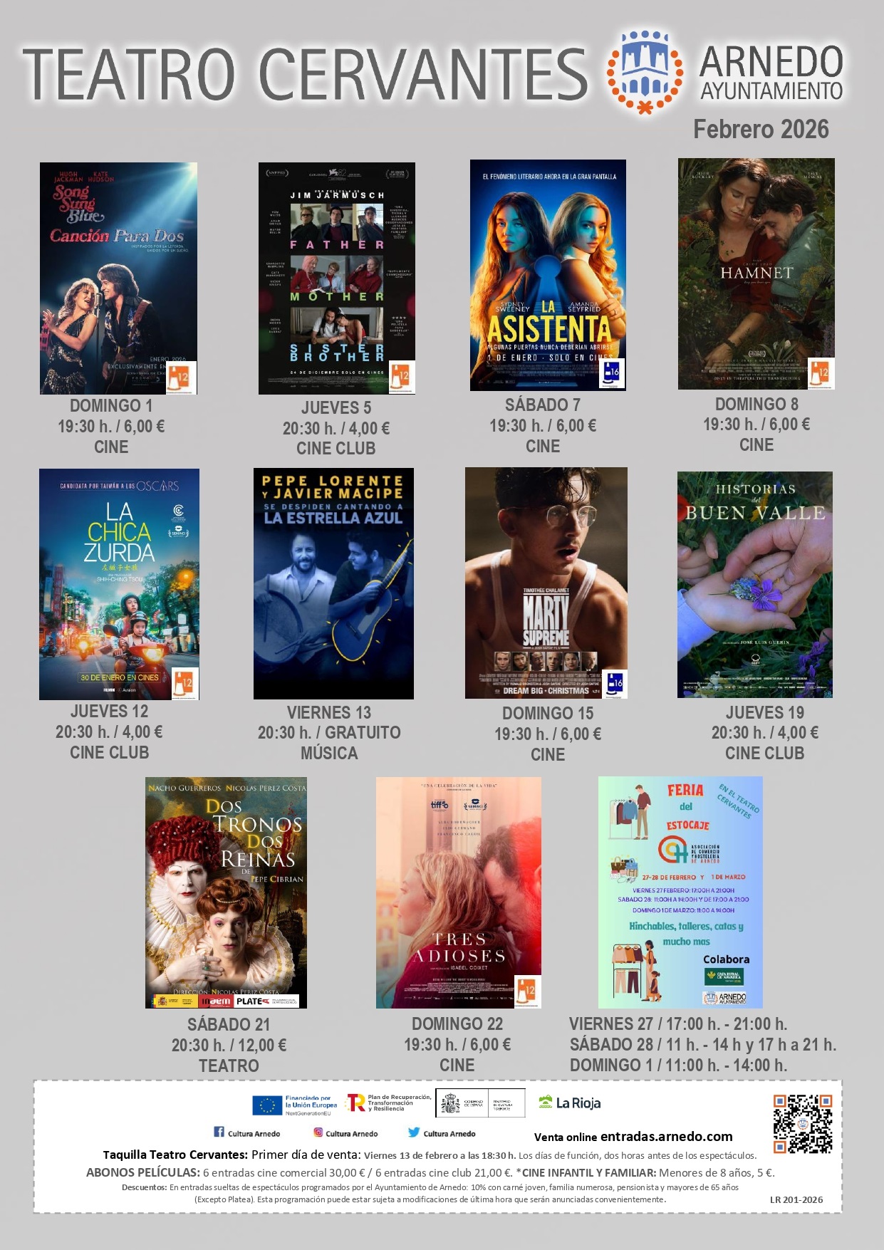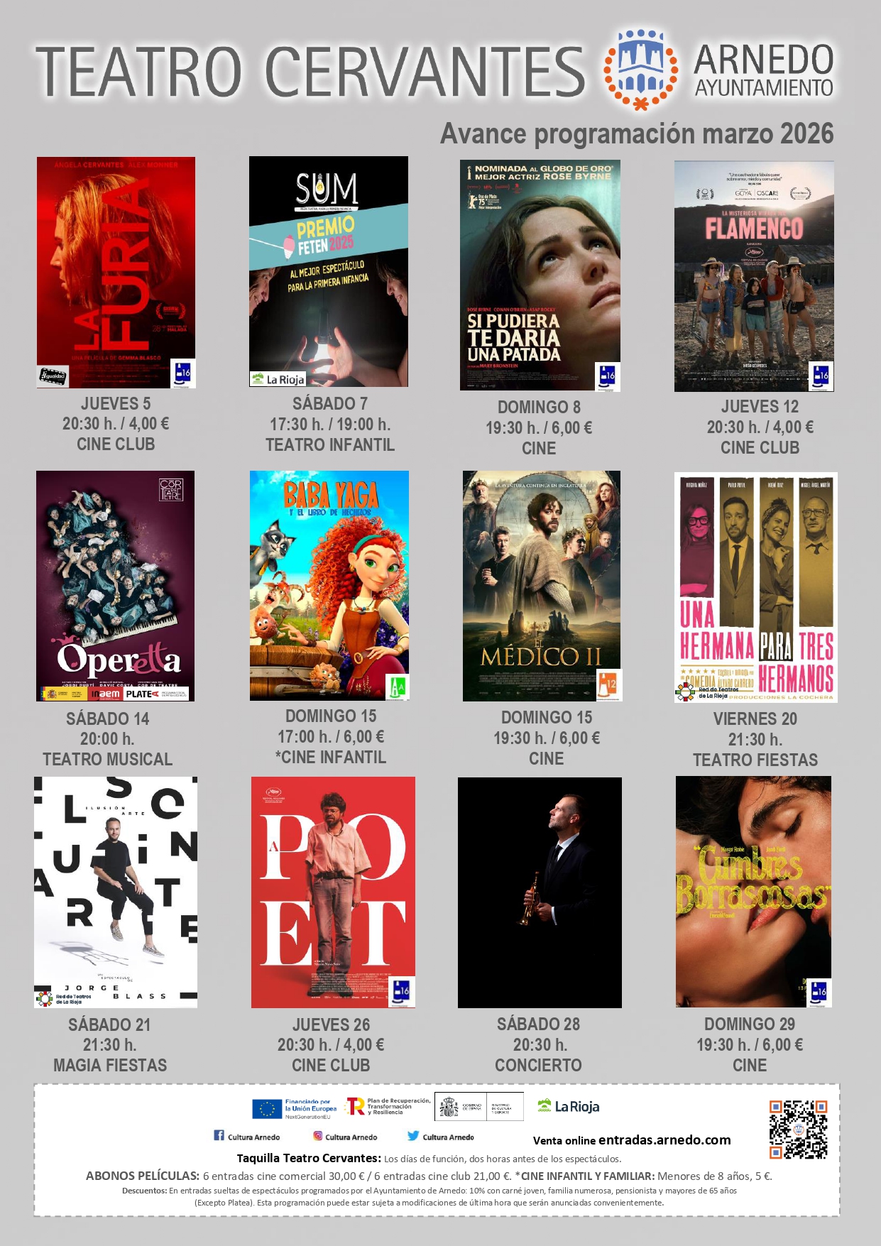 * Teatro Cervantes. Teléfono: 941.385200 Correo electrónico: teatrocervantes@arnedo.com
