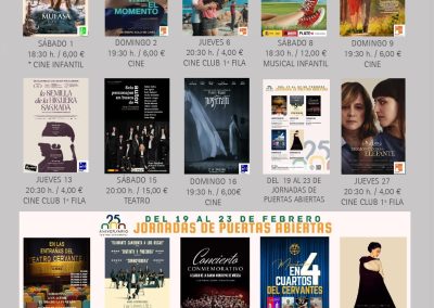 El próximo mes de febrero finalizan las celebraciones del 25º Aniversario del Teatro Cervantes, por ello se han organizado unas Jornadas de Puertas Abiertas.