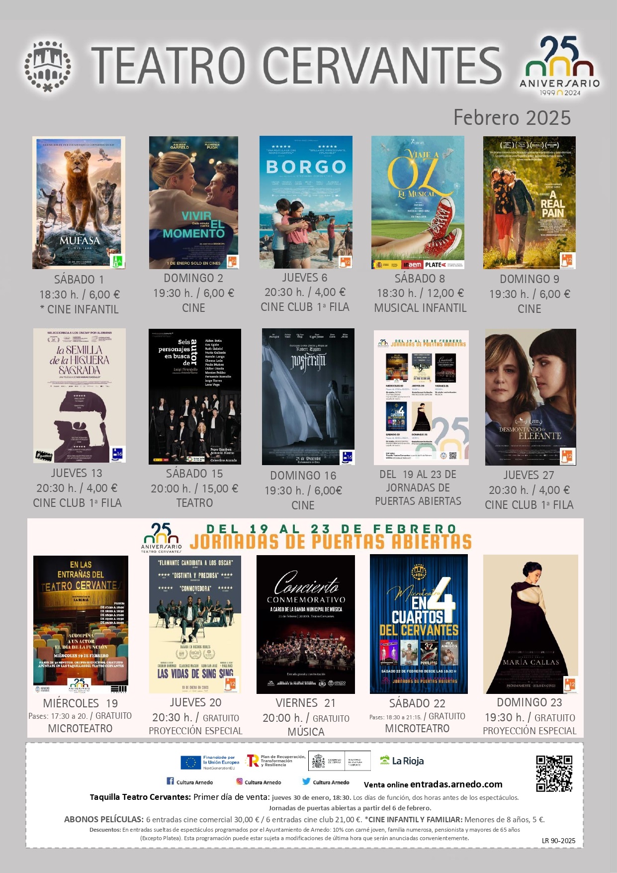 * Teatro Cervantes. Teléfono: 941.385200 Correo electrónico: teatrocervantes@arnedo.com