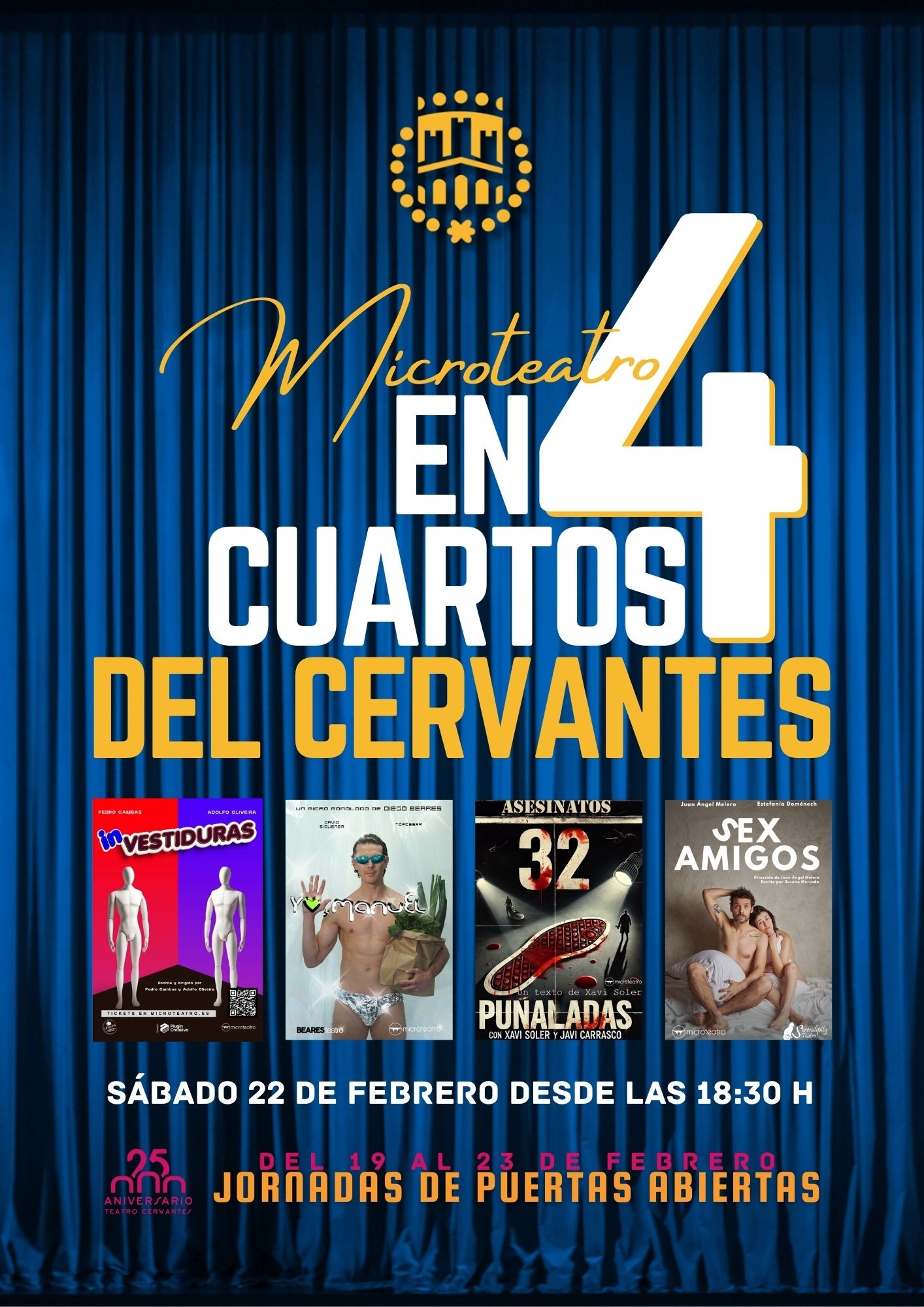 - 22 sábado. 7 Pases de 18:30 h. a 21:15 h. Microteatro – EN 4 CUARTOS DEL CERVANTES