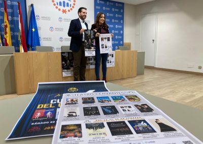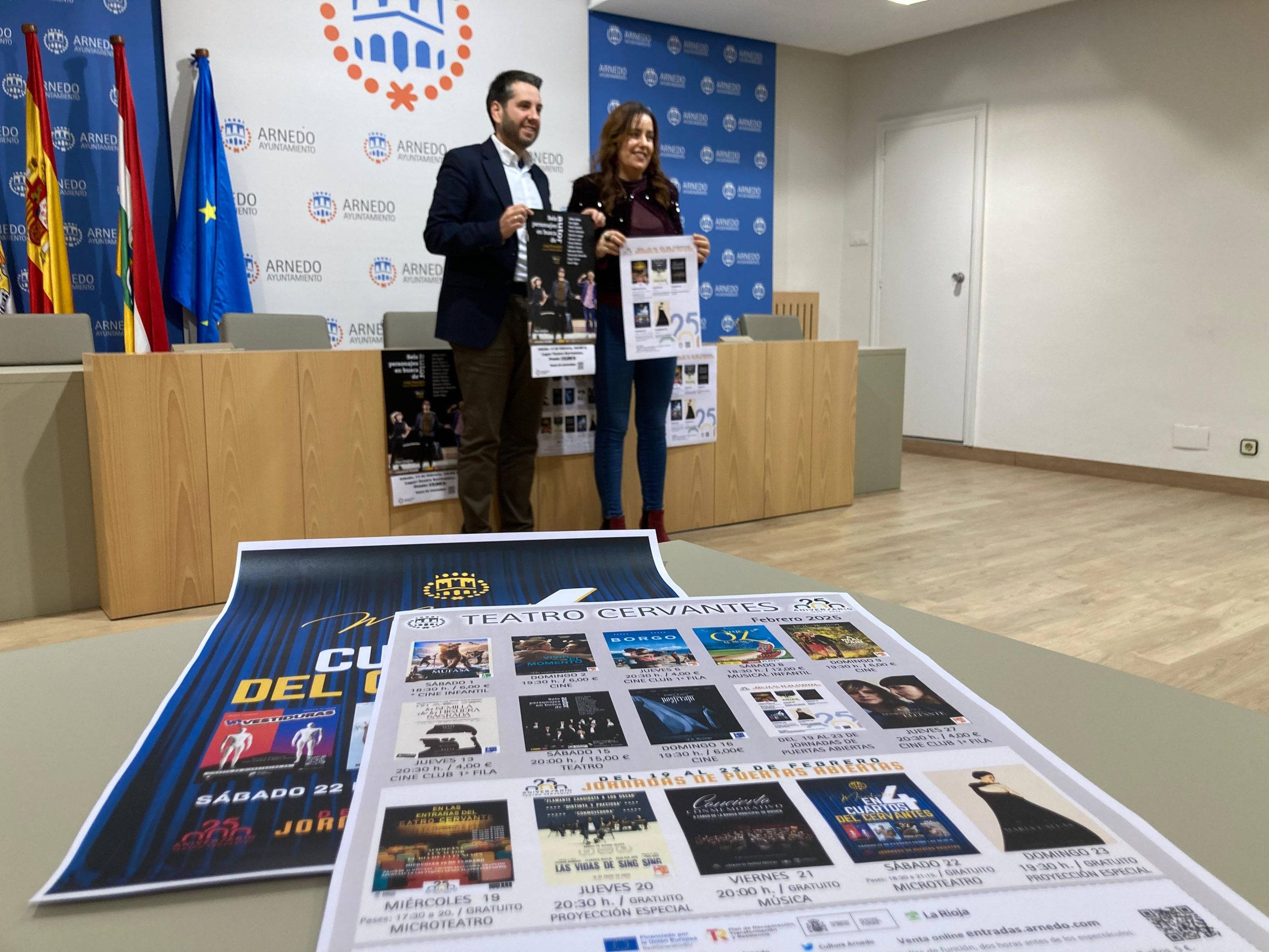 Javier García, alcalde de Arnedo, y María Jesús Zapata, concejala de Cultura, presentan las Jornadas de Puertas Abiertas y la programación de febrero del Teatro Cervantes.