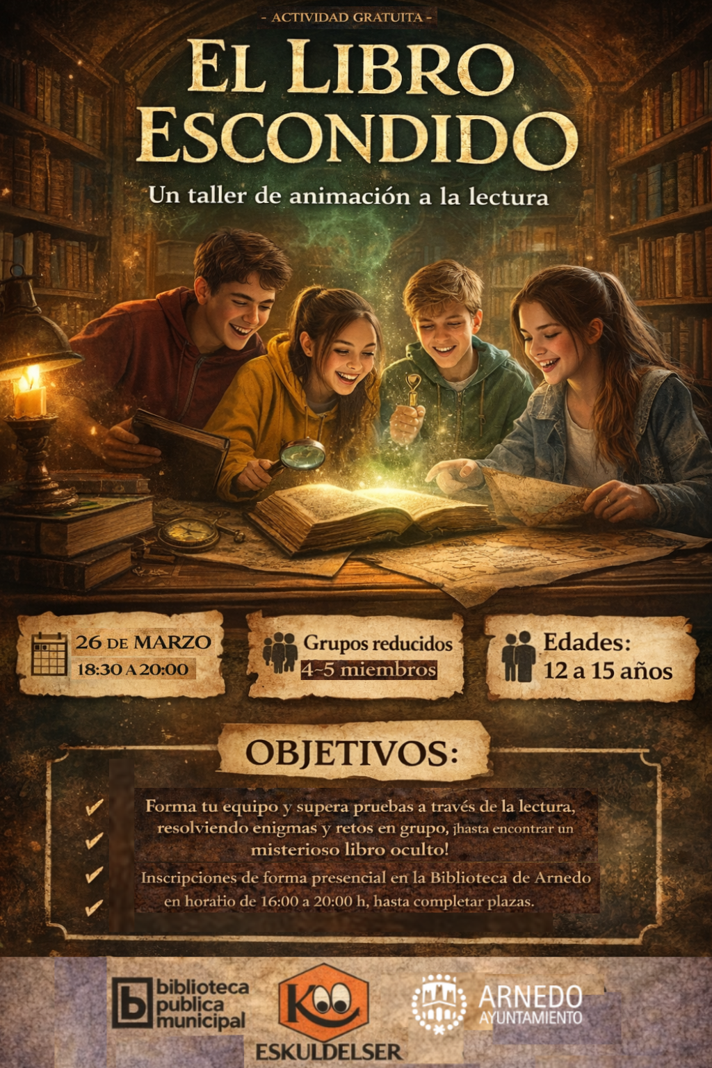 Va dirigido a jóvenes ente 12 y 15 años y es gratuito, aunque se requiere inscripción previa (presencial en la Biblioteca de Arnedo, de 16 a 20 horas), hasta completar las 20 plazas disponibles.