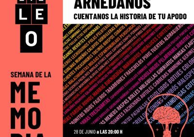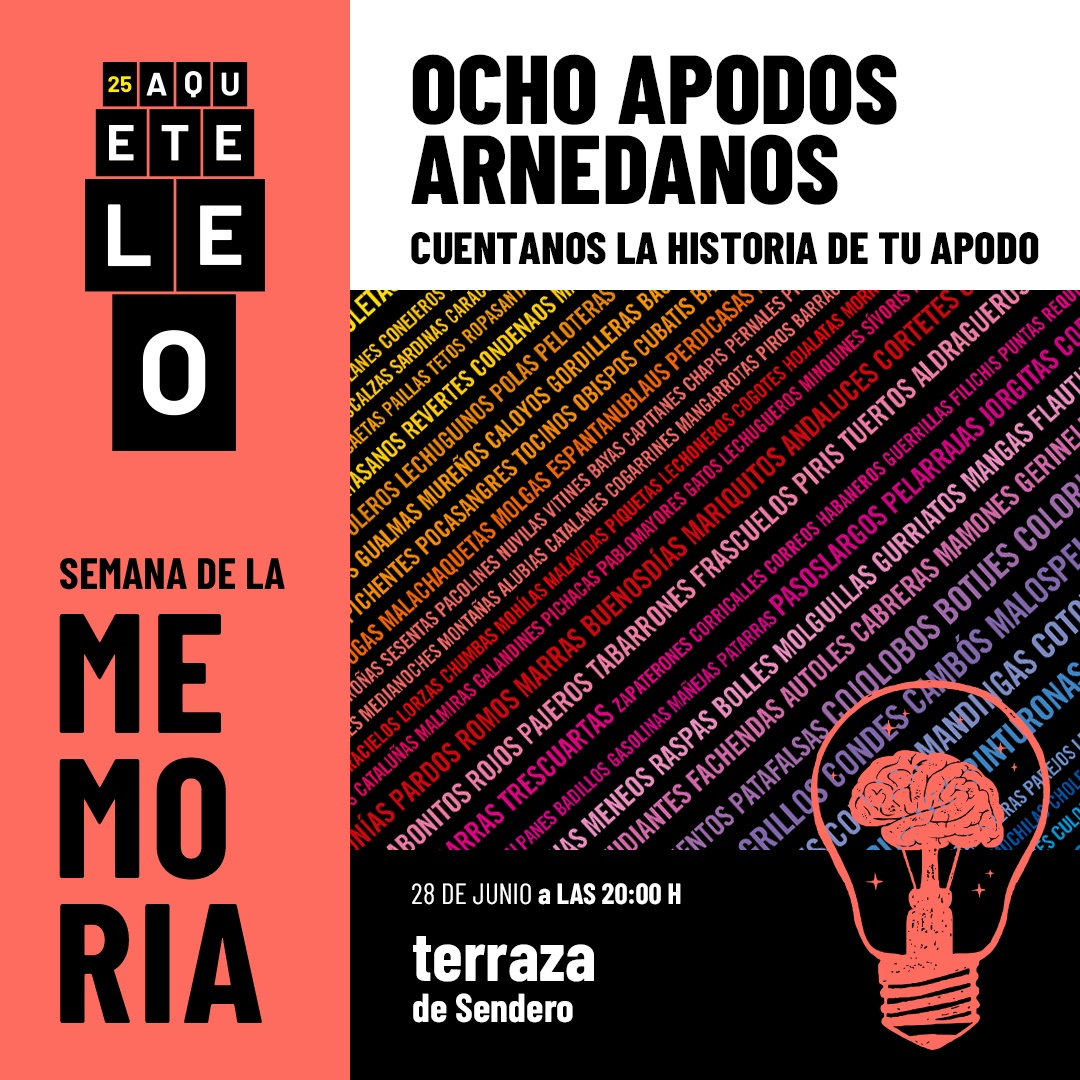 El próximo viernes tendrá lugar en La Terraza de la discoteca Sendero, el encuentro con el público bajo la convocatoria ‘Ocho apodos arnedados’. Estamos buscando, como en la película, los ocho apodos arnedanos que reúnen a más personas. ¿Cuál es el tuyo? ¿Cuántos sois? ¿Qué apellidos o familias lo tienen? En un micro abierto se invita a contar y compartir la historia de sus apodos y que quedarán escritos en los bancos del Parque del Cidacos.