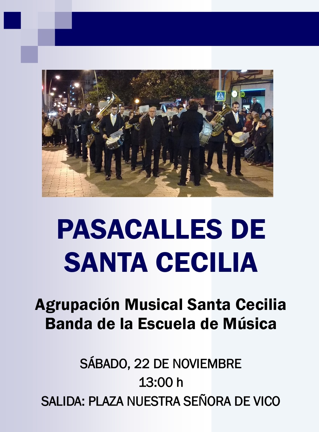 Pasacalles a cargo de la Agrupación Musical Santa Cecilia, en el que también participará la Banda de la Escuela Municipal de Música.