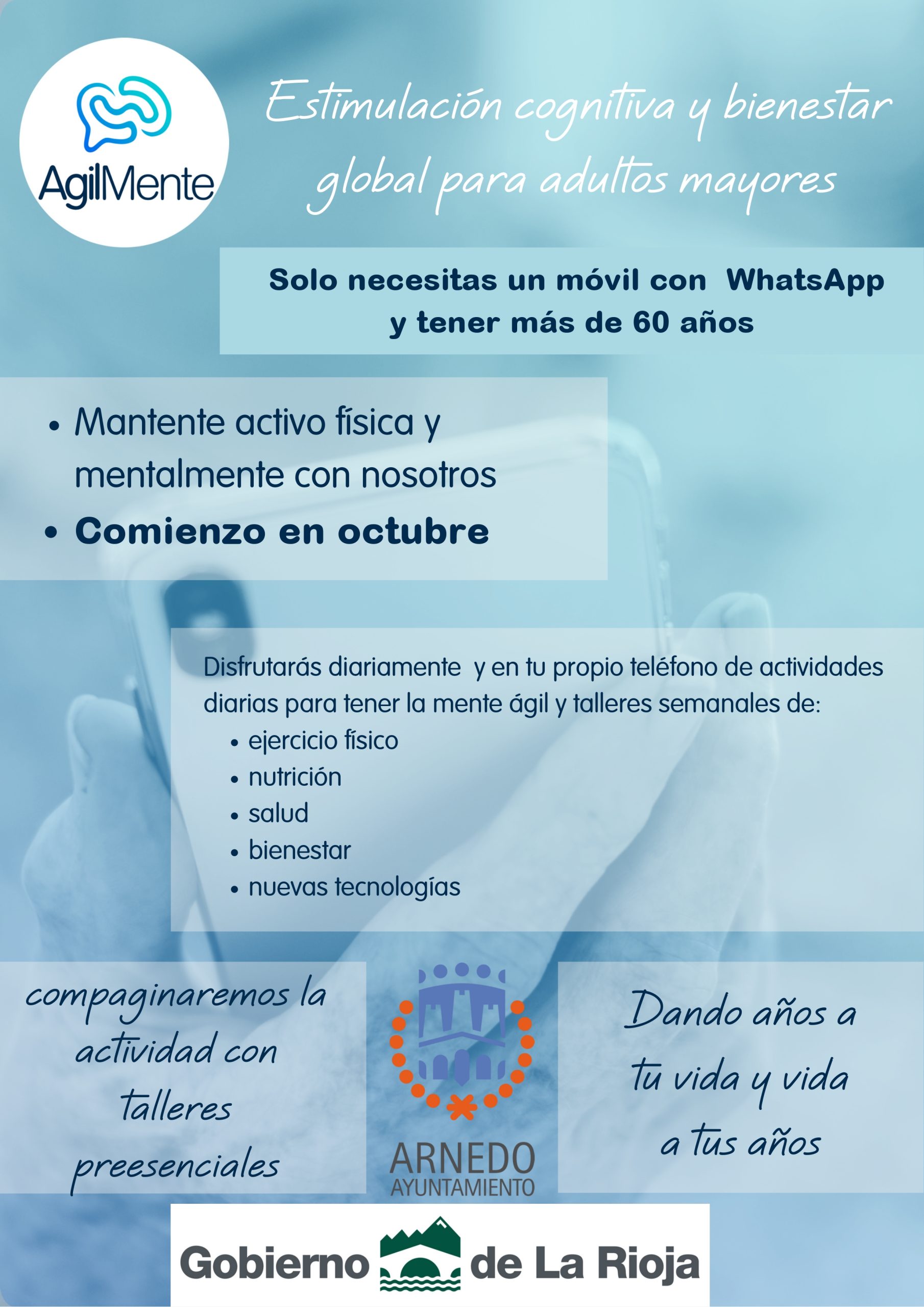 El segundo de los programas fue puesto en marcha en 2021, tras los efectos de la pandemia del Covid-19, como una propuesta innovadora dirigida a las personas mayores de 60 años del municipio. Desde entonces se ha consolidado como un recurso estable y muy valorado en Arnedo, que en el curso 2025/2026 contará con la participación de 55 personas.
