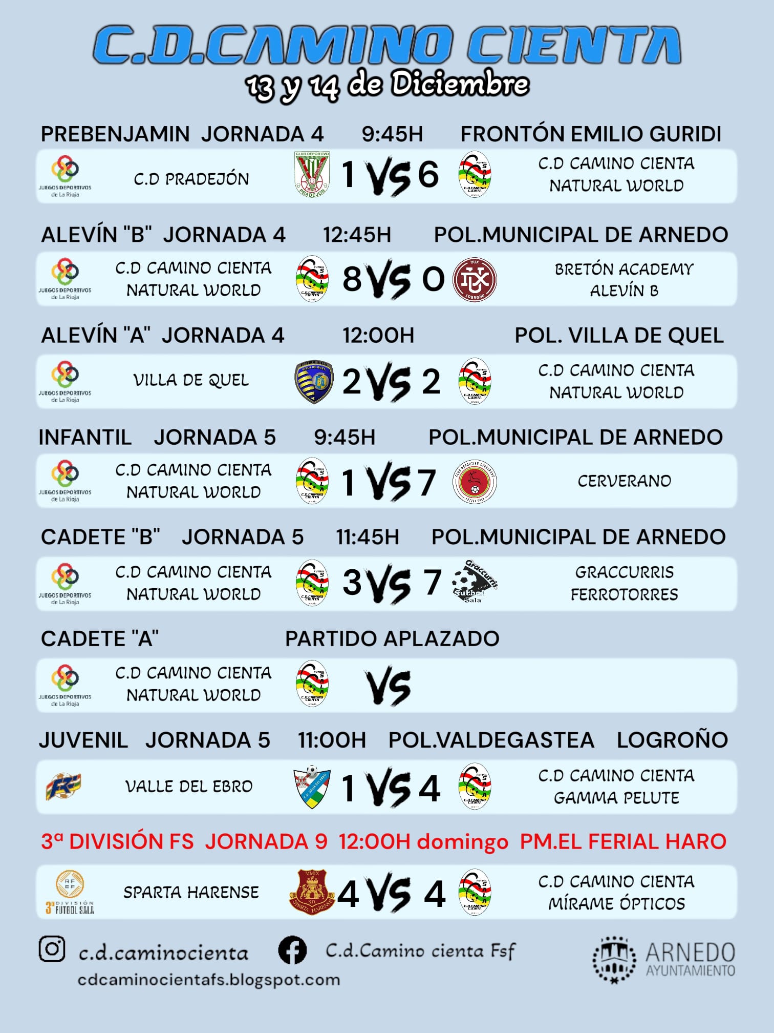 Resultados de los partidos de futsal disputados por el club Camino Cienta durante el pasado fin de semana.