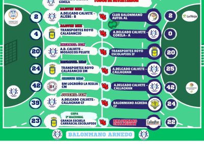 Resultados de los partidos de balonmano disputados por el  Balonmano Callaghan y el Club A. Delgado Calvete el sábado 13 de diciembre.
