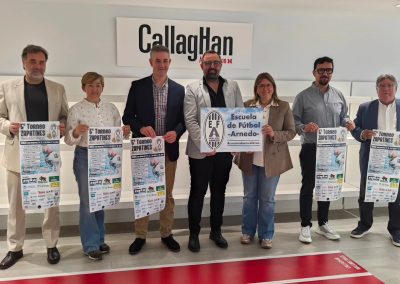El presidente y el vicepresidente de la escuela, Víctor Santo y Juan Núñez, el director general de Deporte del Gobierno de La Rioja, Diego Azcona, el presidente de la Federación Riojana de Fútbol, Jacinto Alonso, e Iván García, de la empresa de calzado Callaghan-Gorila, en representación de los patrocinadores han participado así mismo en la presentación de la presente edición del torneo que va a reunir a 1.500 niños y niñas de entre cinco y doce años pertenecientes a cien equipos.