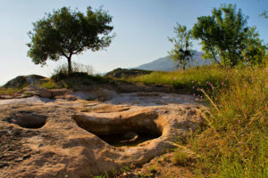 Los lagares rupestres de Arnedillo, también conocidos como los lagares del Cogote de las Pilas, son un conjunto de once lagares tallados en la roca arenisca, utilizados históricamente para la producción de vino en La Rioja. El lugar incluye un abrigo-refugio para almacenar herramientas y refugiarse del mal tiempo, destacando la importancia de la vitivinicultura en la región a lo largo de los siglos.