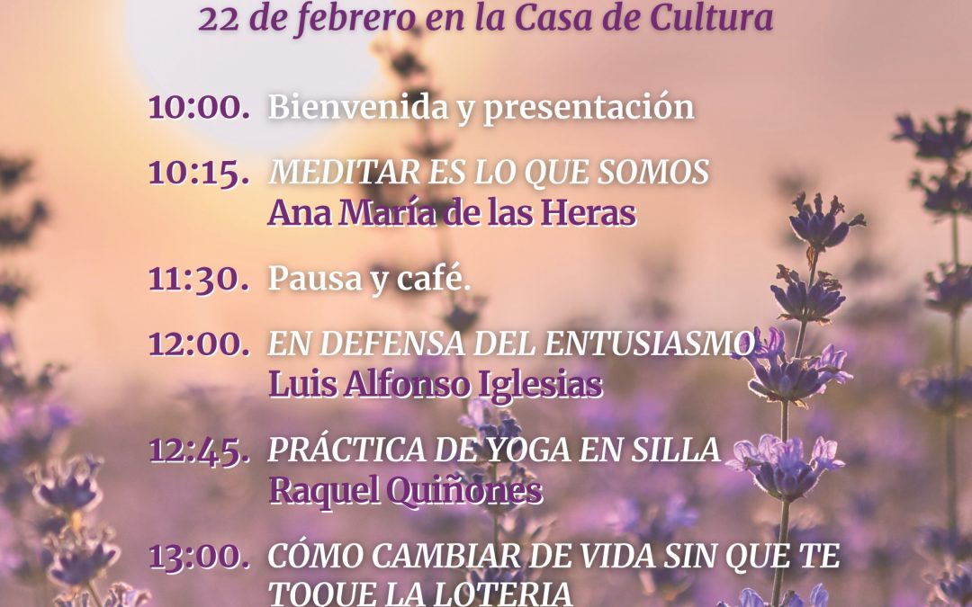 El I FORO DEL BIENESTAR «El Arte de Vivir» se celebrará el día 22 de febrero en el Salón de actos de la Casa de Cultura con el siguiente programa: 10.00 h. Comienza el foto con la ponencia, MEDITAR ES LO QUE SOMOS, impartida por Ana María de las Heras...