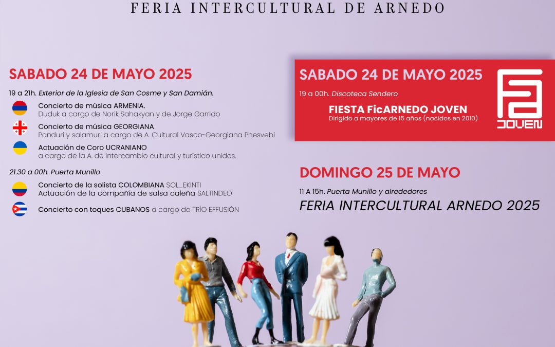 El domingo 25 DE MAYO celebramos la INTERCULTURALIDAD en Arnedo: 11:00 hrs.: Desfile de los países participantes (ARGELIA, ARMENIA, COLOMBIA, CUBA, ESPAÑA, GEORGIA, GHANA, MARRUECOS y UCRANIA) desde la Oficina de Turismo hasta la Puerta Munillo 11:30 hrs.:...